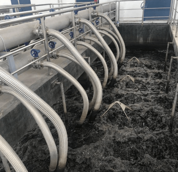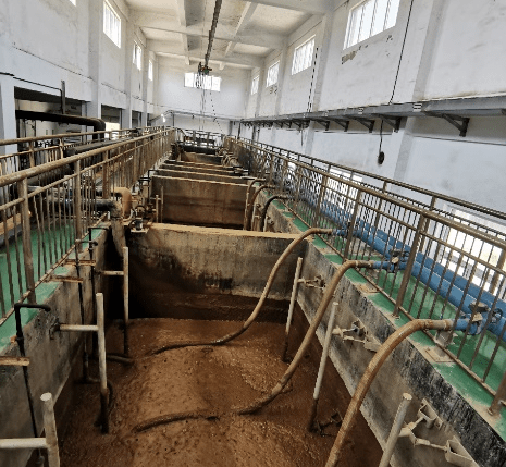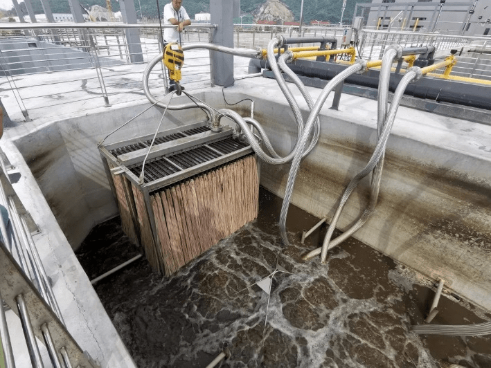 该项目设计处理水量4000 m³/d,采用18套LGJ1E3 - 2000×26浸没式超滤膜组件,膜材质为PVDF复合膜,现场设置3个膜池,膜池中放置6套浸没式超滤膜组件,总膜面积14508平方米。