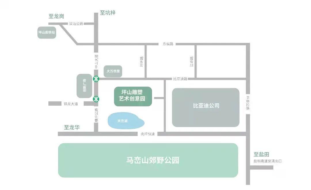 进,是繁华是梦寐以求的向往之城退,是静谧是志满意得的闲适之地进退皆景的生活就存在于坪山雕塑艺术创意园2021年,坪山雕塑艺术创意园蝶变升级,华丽转型,依托马峦山郊野公园的景区带动效应,打造集办公、餐饮、休闲、娱乐于一体的吃喝玩乐天堂,每一处都是绝佳的拍照打卡圣地,即将成为新一代城市青年的聚集地。坪山雕塑艺术创意园约50-400㎡文化商铺只待您来这里有五湖四海的稳定客流坪山雕塑艺术创意园作为深圳市文化创意产业园之一,连续9年成为文博会分会场,地处坪山商务核心区,人流红利赋能,是集文体中心、大型商企、旅游景区为一体的理想创业基地。这里有便捷通达的交通路网园区位于比亚迪路旁,紧邻南坪三期、坪盐通道、坪山大道、坪山高铁站、深圳机场坪山候机楼,实现10分钟可达盐田,20分钟可达罗湖、深圳北站,30分钟可达福田,45分钟可达前海,65分钟直达深圳宝安机场
