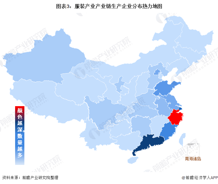 从我国服装产业链企业区域分布来看,服装产业产业链企业主要分布在华东、华南地区,其次是华北、华中地区,西北、西南地区企业相对较少。