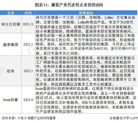 2021年以来,服装产业代表性企业的投资动向主要包括收购公司扩大市场份额,投资产业链公司已获得业务的上下游延伸等。服装产业代表性企业最新投资动向如下: