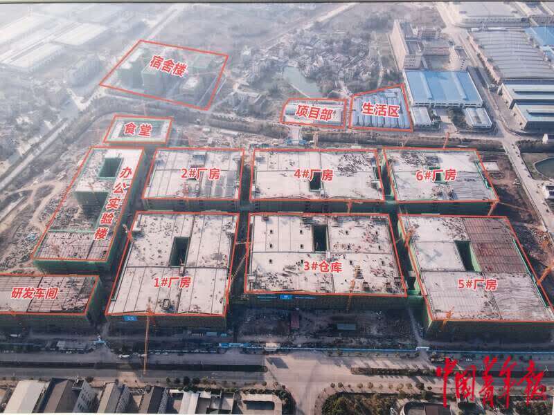 在现场,有28台塔吊、上千名施工人员争分夺秒,克服高温、多雨等恶劣外部环境,在3个月时间内完成40万平方厂房建筑和结构的方案、施工图设计及图纸预审工作。在确保安全、质量高标准的前提下,75天就实现首栋单体厂房顺利封顶,较原计划提前2个月;自2020年10月起,连续3个月单月产值破亿,最高单月产值达到1.56亿元。