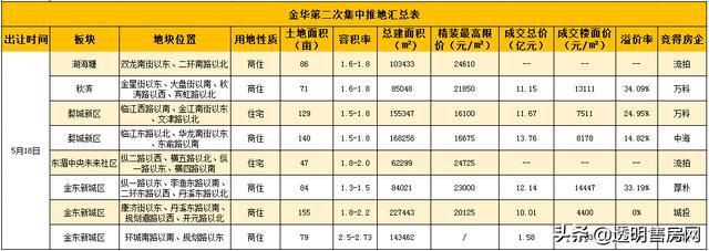 金华5月18日出让的8宗土地中,除去单宗纯安置地,去除无偿配建幼儿园、无偿配建人才房等因素,计算住宅限价与实际成交楼面价的价差,平均值为5717元/㎡。