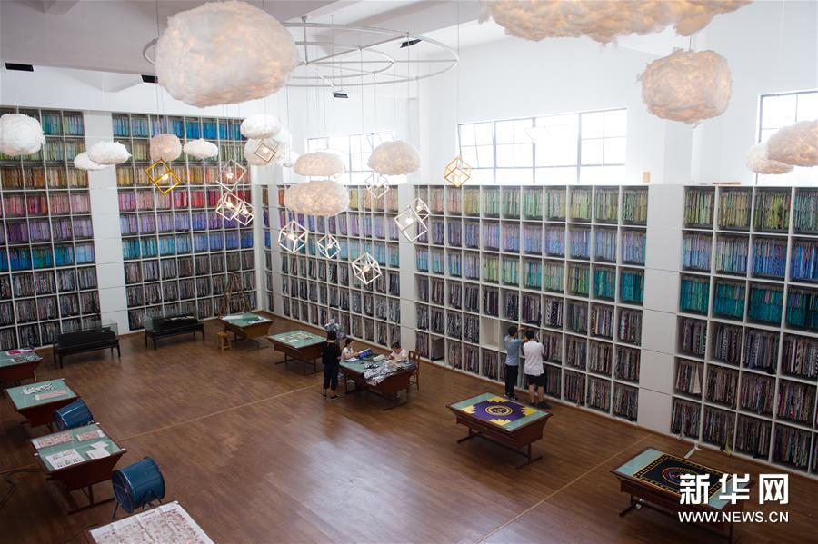 8月25日,工作人员在园区内由锅炉房改造的印花布博物馆整理印花布资料。该博物馆收集归档了绍钦织造印染有限公司20多年来积累的16万多种花型,供产业设计人员和相关专业的大学生前来查阅、寻找灵感。为推动传统优势产业转型升级、加速印染企业集聚发展,浙江绍兴印染龙头企业绍钦织造印染有限公司于2016年9月对厂区进行重新规划,打造以传统文化和现代艺术设计相结合的“尚1051”文化创意产业园区。园区总占地面积12万平方米,改扩建后总建筑面积约7万平方米,目前已有不少商家进驻,整个园区预计于2018年投产使用。新华社记者翁忻旸摄
