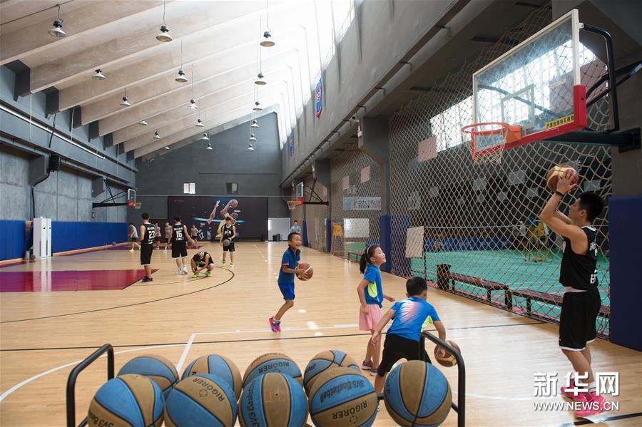 8月25日,人们在园区内由印染厂房改造的体育馆内运动。为推动传统优势产业转型升级、加速印染企业集聚发展,浙江绍兴印染龙头企业绍钦织造印染有限公司于2016年9月对厂区进行重新规划,打造以传统文化和现代艺术设计相结合的“尚1051”文化创意产业园区。园区总占地面积12万平方米,改扩建后总建筑面积约7万平方米,目前已有不少商家进驻,整个园区预计于2018年投产使用。新华社记者翁忻旸摄