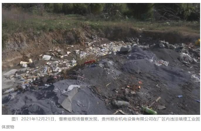 2013年编制的园区控制性详细规划明确,要规划建设工业固废处置中心。但当地一直没有落实规划要求,至今没有建设固废处置中心,一些企业随意倾倒或填埋固体废物。现场督察发现,中铝集团下属贵州顺安机电设备有限公司在厂区内违法填埋工业固体废物。监测结果显示,填埋区域渗坑积水化学需氧量浓度高达391毫克/升,超地表水Ⅲ类标准19倍,对水和土壤环境造成严重影响。